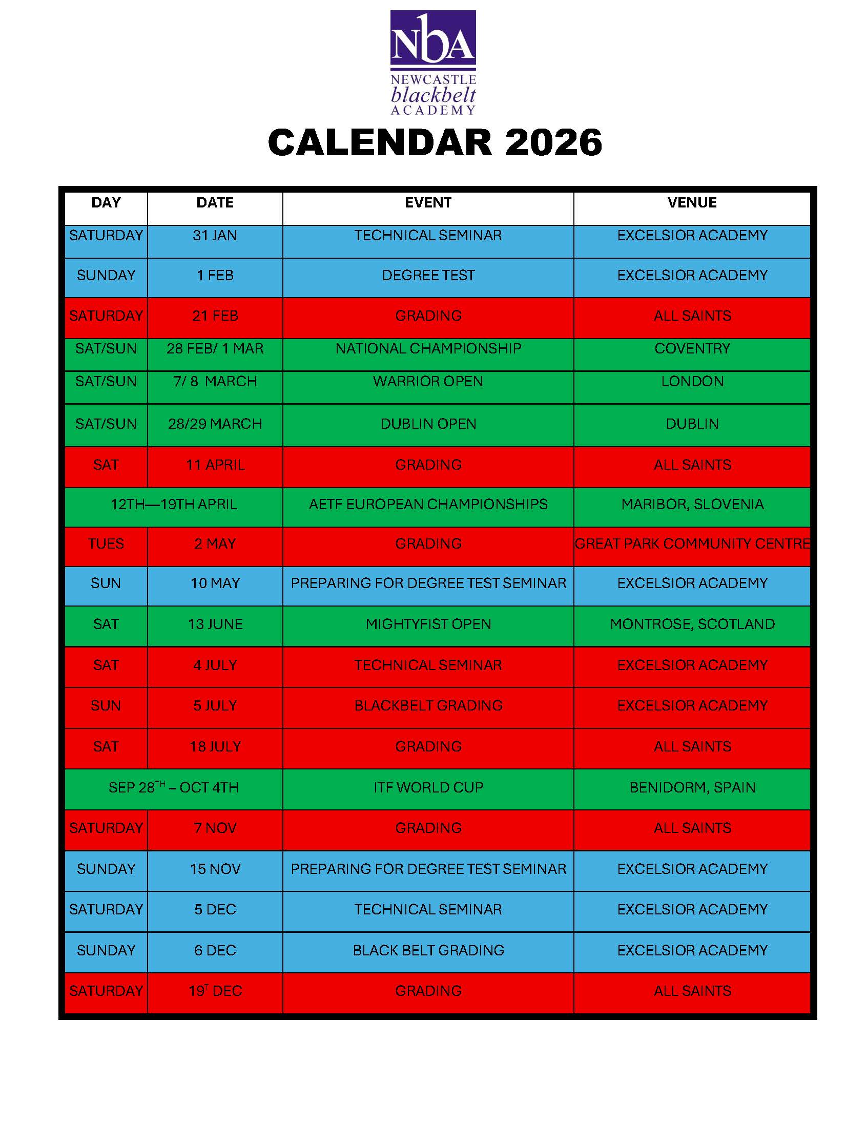 PLEASE NOTE THE GRADING DATES, AND THE MAIN COMPETITIONS. WE WILL CONFIRM THE CHARITY TOURNAMENT DATE AS SOON AS WE HAVE FOUND A VENUE